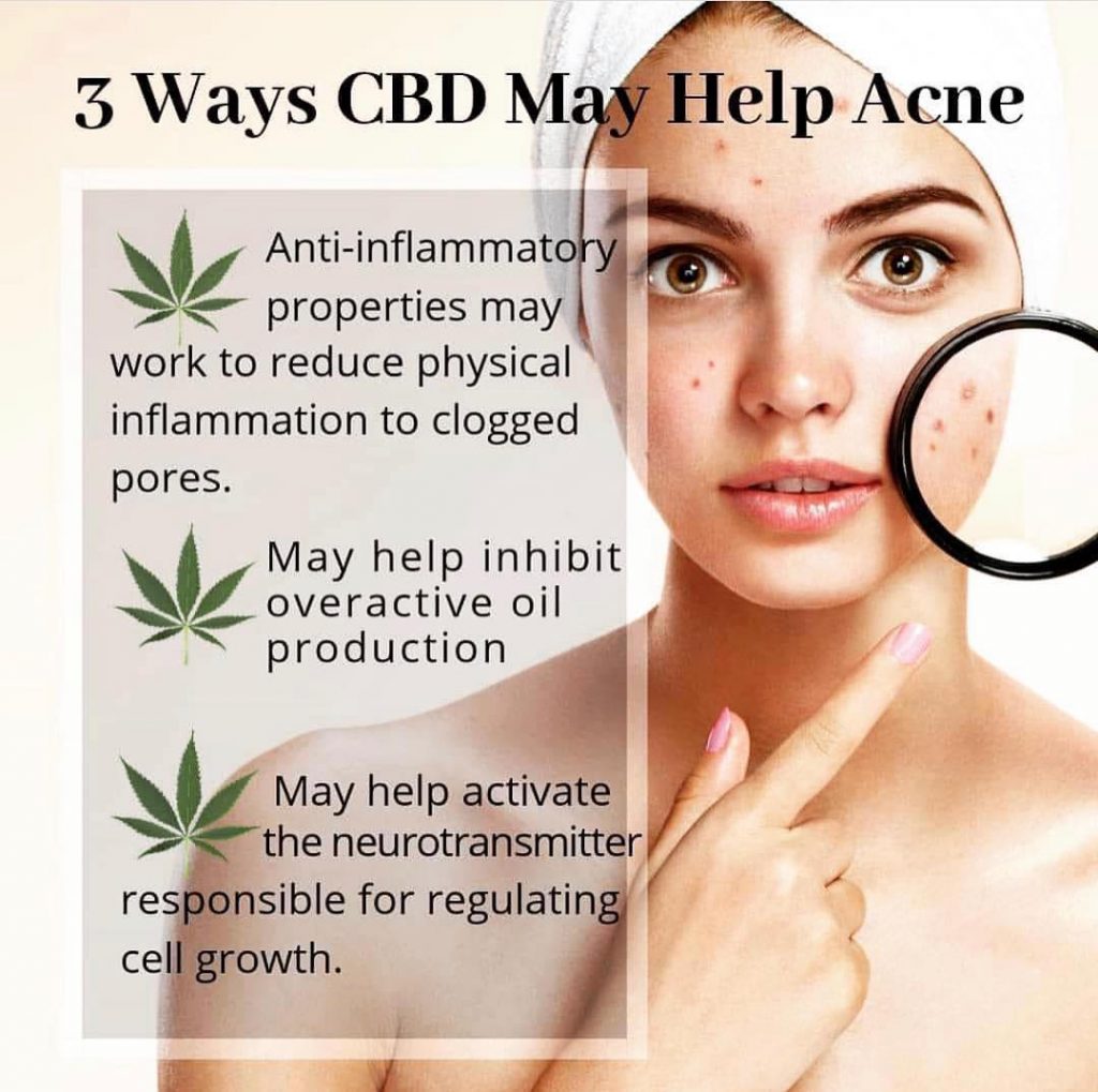 The researchers found that CBD inhibited oil production and also had anti-inflammatory effects on oil-producing glands. They concluded CBD was a “promising therapeutic agent” for acne treatment.