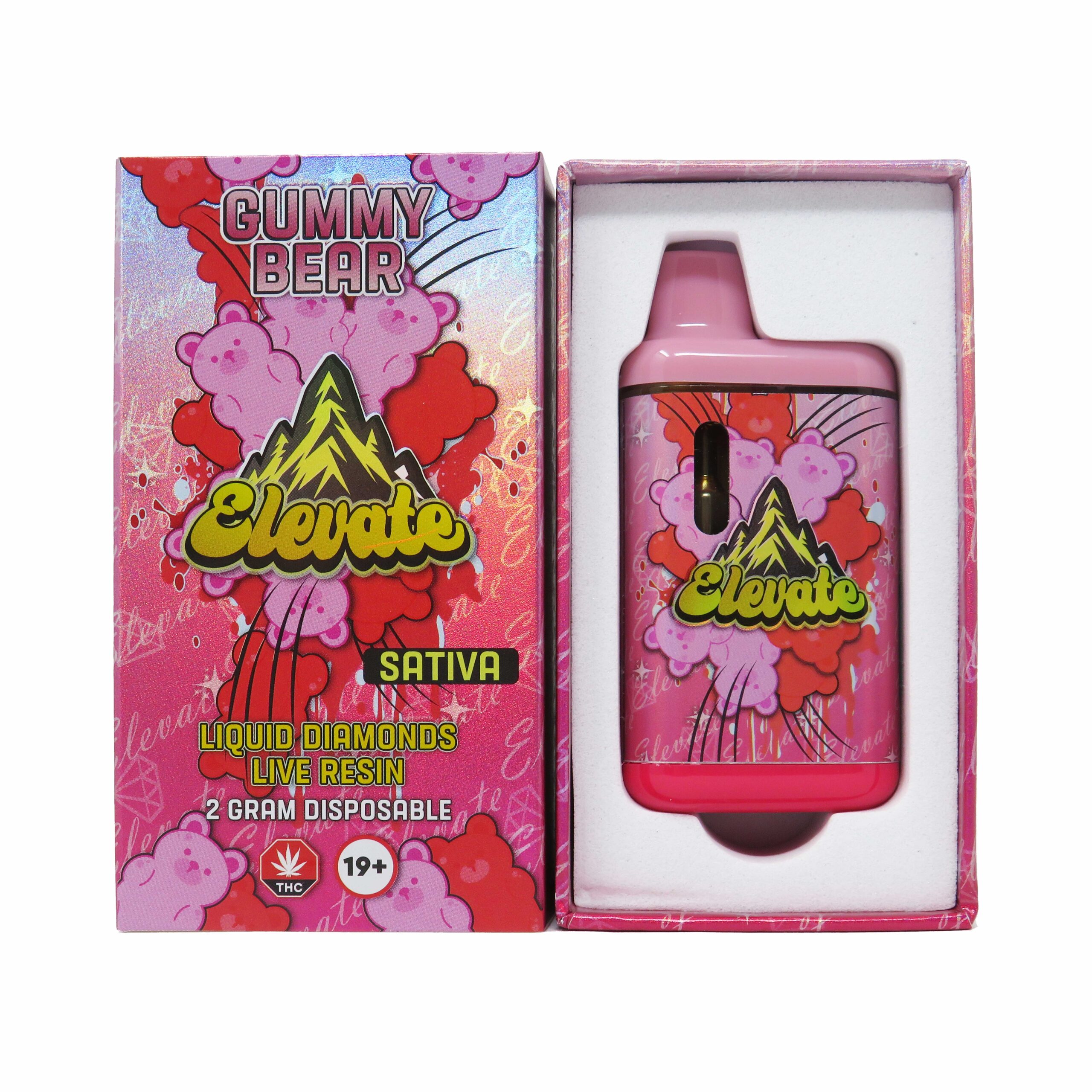 Meet the Elevate Gummy Bear (Sativa) 2 Gram Vape Pen – Liquid Diamonds And Live Resin — a high-powered fusion of Liquid Diamonds and Live Resin, designed for those who demand more from their vape. Each sleek, disposable pen is packed with 2 grams of ultra-potent extract, combining the crystal-clear intensity of THCa diamonds with the full-spectrum flavor of live resin.