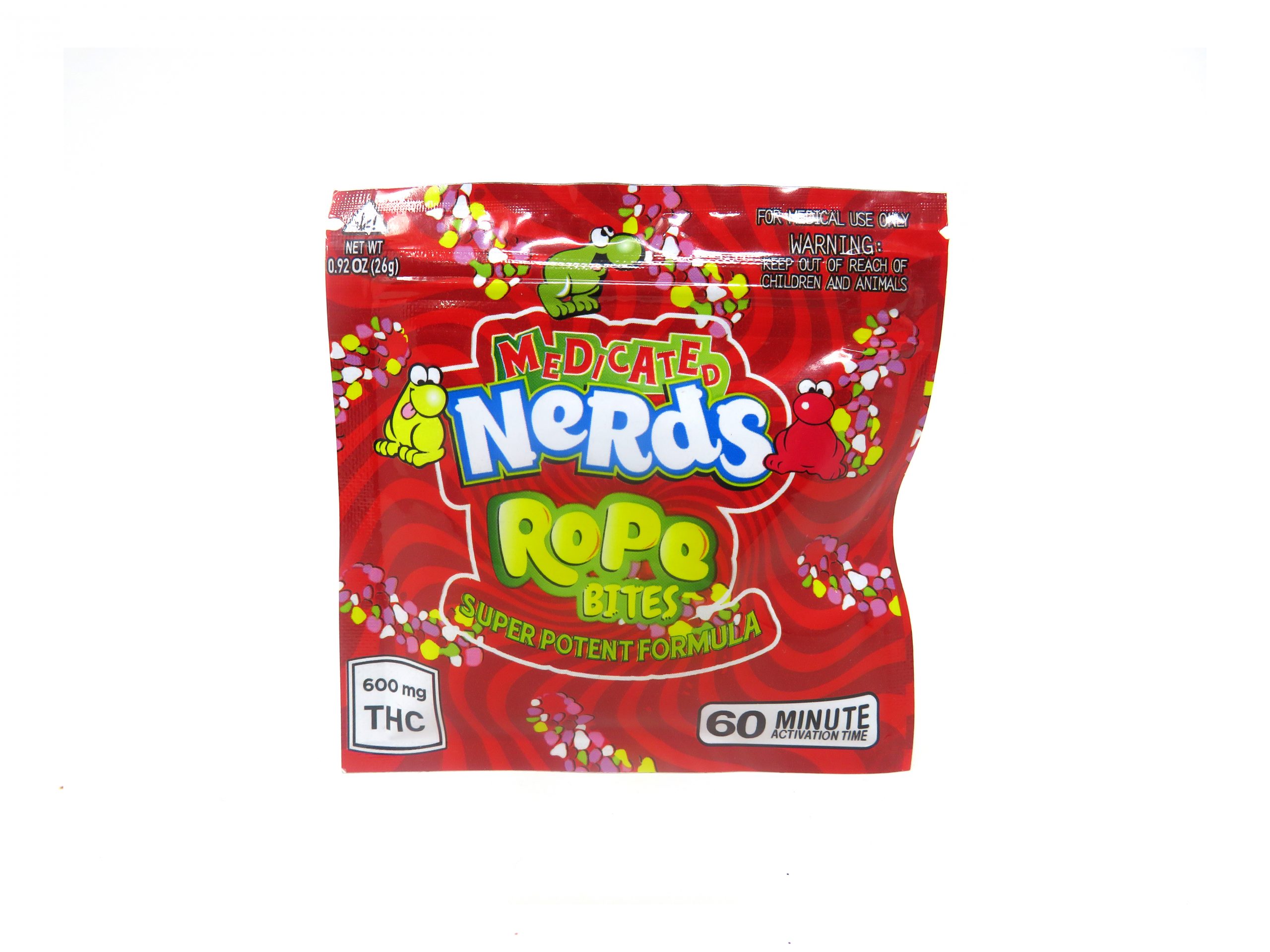 These Medicated Nerds Rope Bites are infused with 600 mg of active THC. This super potent candy takes approximately an hour to kick in.
