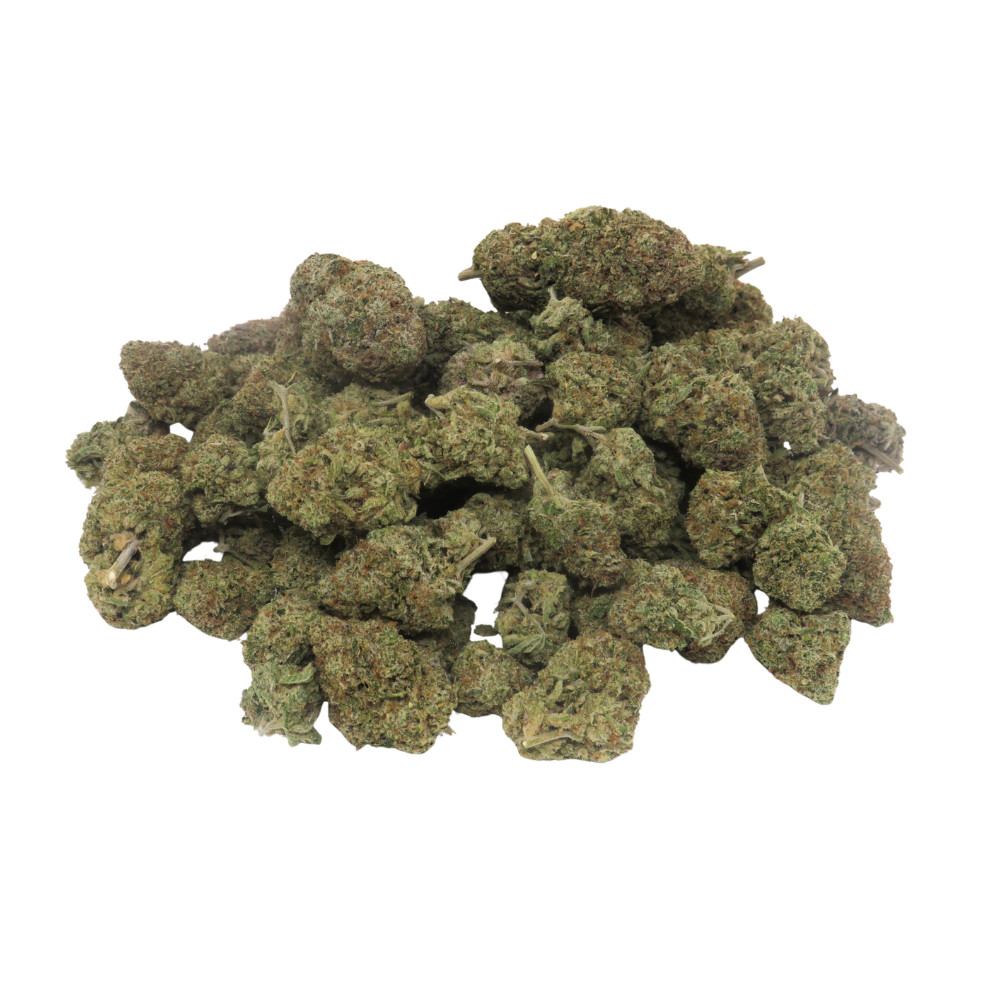Pink Coma is a heavy-hitting indica strain known for its loud aroma, high potency, and deeply sedating effects. Dense, frosty buds showcase shades of green with pink and purple undertones, giving it strong visual appeal.